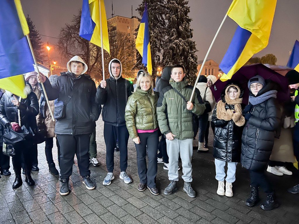 Здобувачі освіти та представники Студентської ради Луцького кооперативного фахового коледжу ЛТЕУ за ініціативою Луцького молодіжного центру долучилися до віче «Заряджені гідністю та жагою до свободи», приуроченого десятиріччю Дня Гідності і Свободи. Відзначаючи річницю Революції Гідності, ми творимо історію, яку пишемо разом. Ми – частинка народу. Без нас немає ні народу, ні історії. Україна – це територія гідності й свободи.