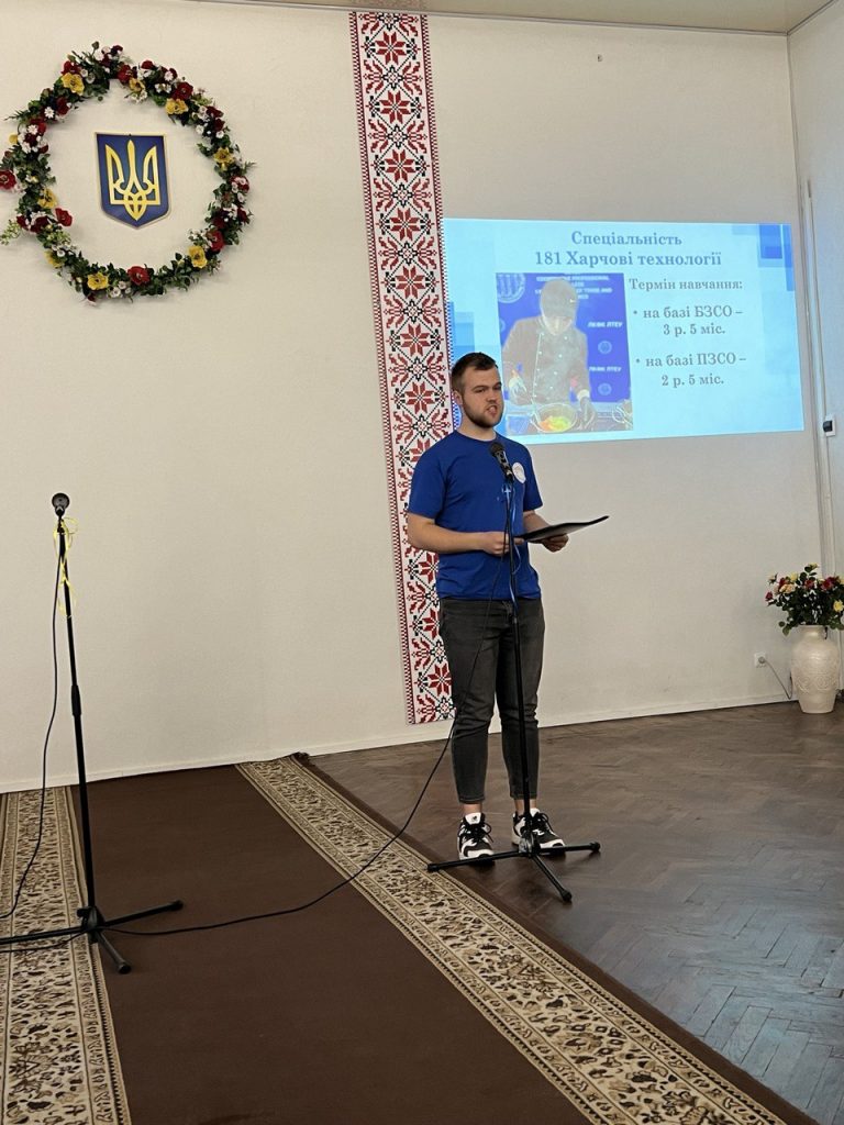19 травня 2024 р. Луцький кооперативни фаховий коледж ЛТЕУ в рамках роботи ЦЕНТРУ КАР’ЄРИ проводив День гостинності. Майбутні абітурієнти ти їх батьки мали змогу ознайомитися з професіями та спеціальностями, які можна здобути у коледжі. Студенти спеціальності 181 Харчові технології провели майстер класи з приготування тістечка “Картопля” та десерту “Трайфл”. Студенти спеціальності “Підприємництво і торгівля” навчали майстерно завязувати галстуки, креативно упаковувати рушники у формі ведмедика та зайчика. Учні професії “офіціант. Бармен” готували шарові коктейлі, а здобувачі освіти спеціальності “Готельно-ресторанна справа” навчали складати серветки та правилам сервірування столу”. Студенти спеціальності “Облік і оподаткування”, “Фінанси, банківська справа, страхування та фондовий ринок ” розповіли абітурієнтам про особливості використання грошей, порядок їх перевірки на справжність. Усі охочі мали змогу запустити дрони. На завершення зустрічі гості скуштували куліш, який приготували на відкритому вогні учасники гуртка “ПрофіCook”.