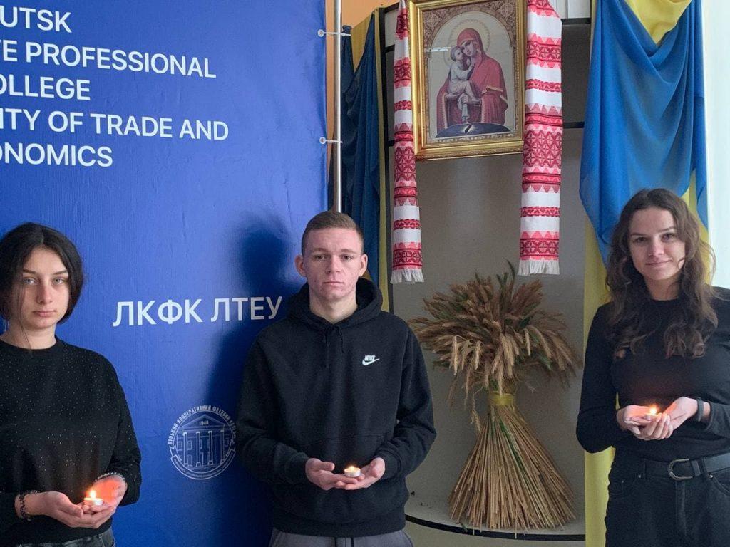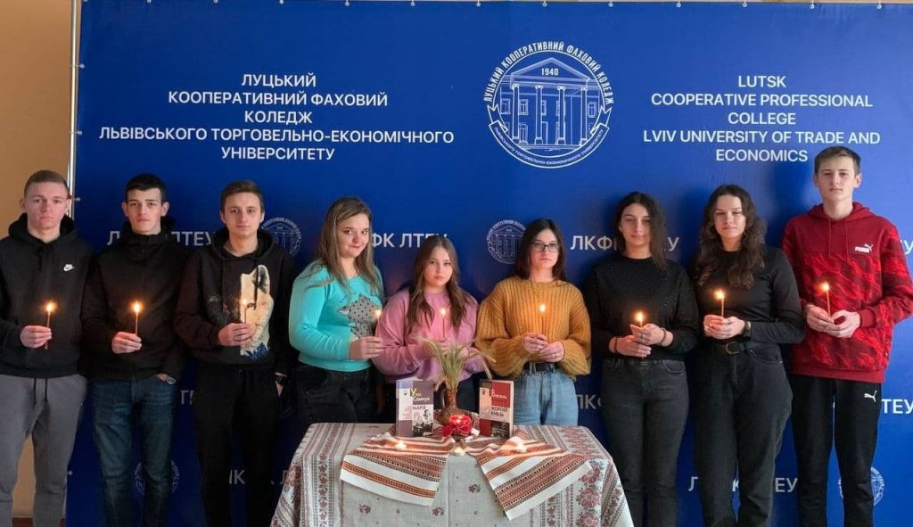 Студенти ll курсу Луцького кооперативного фахового коледжу ЛТЕУ спеціальностей “Харчові технології” та “Підприємництво, торгівля та біржова діяльність” до Дня пам’яті жертв голодоморів та політичних репресій провели годину спілкування й обговорили роман “Жовтий князь” Василя Барки та повість “Марія” Уласа Самчука. Автори розкривають одну з найстрашніших сторінок в історії українського народу і розповідають про голодомор.Традиційно в четверту суботу листопада українці всього світу об’єднуються вшанувати вбитих голодом, демонструючи силу свого духу і єдності. О 16:00 проходить акція “Запали свічку пам’яті”.