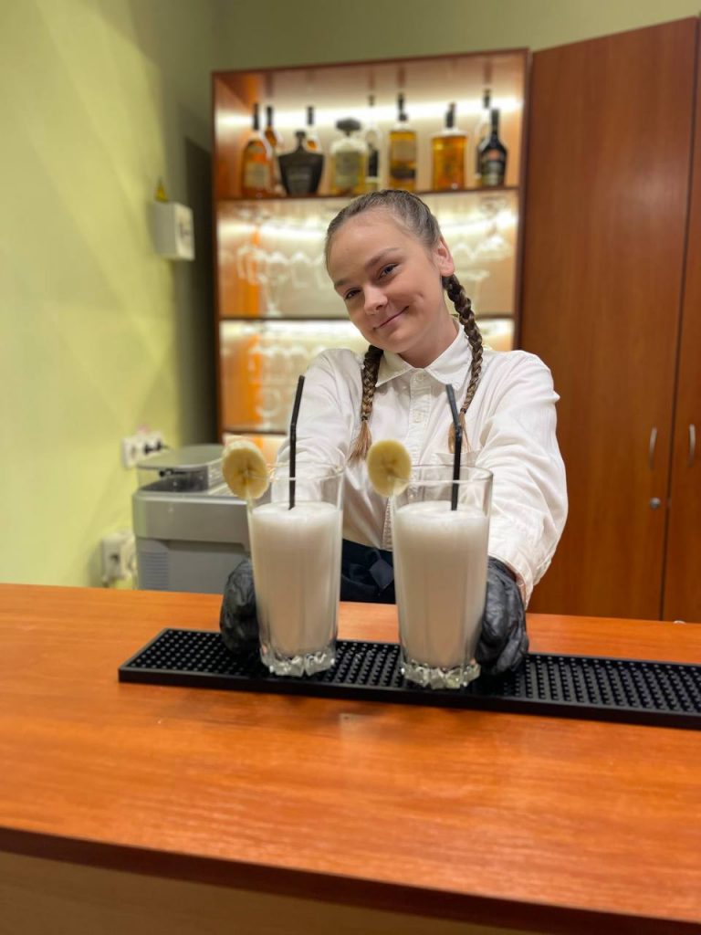 Студенти 3 курсу спеціальності Готельно-ресторапнна справа відпрацювали навички приготування, оформлення та подавання коктейлів на основі морозива, молока, кисломолочних продуктів на лабораторному занятті з освітньої компоненти Барна справа під керівництвом викладача Ольги Лебедь.