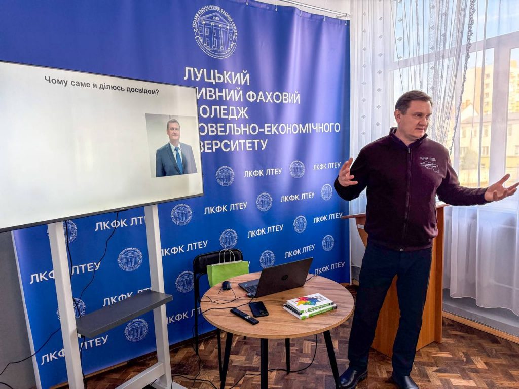 2 квітня 2026 року для здобувачів освіти Луцького кооперативного фахового коледжу ЛТЕУ спеціальностей Облік і оподаткування та Фінанси, банківська справа, страхування та фондовий ринок відбулася надзвичайно змістовна зустріч — гостьова лекція директора Північно-Західного макрорегіонального управління ПриватБанку Юрія Войтенка на тему: «Як стати успішним у професійному житті».