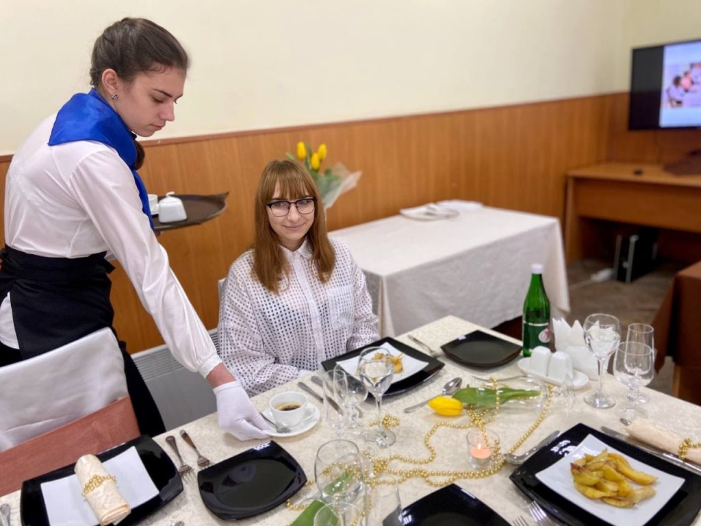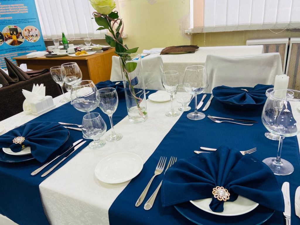 Учасникам змагань необхідно було: скласти серветки різних форм за 5хв, засервувати стіл до 8 Березня на 4 персони, скласти меню та його представити, прийняти замовлення з оформленням рахунку, провести обслуговування гостей та конкурс капітанів. Вітаємо переможців, команду «БЕМС», які будуть змагатись у Всеукраїнському конкурсі «Рест-Профі».
