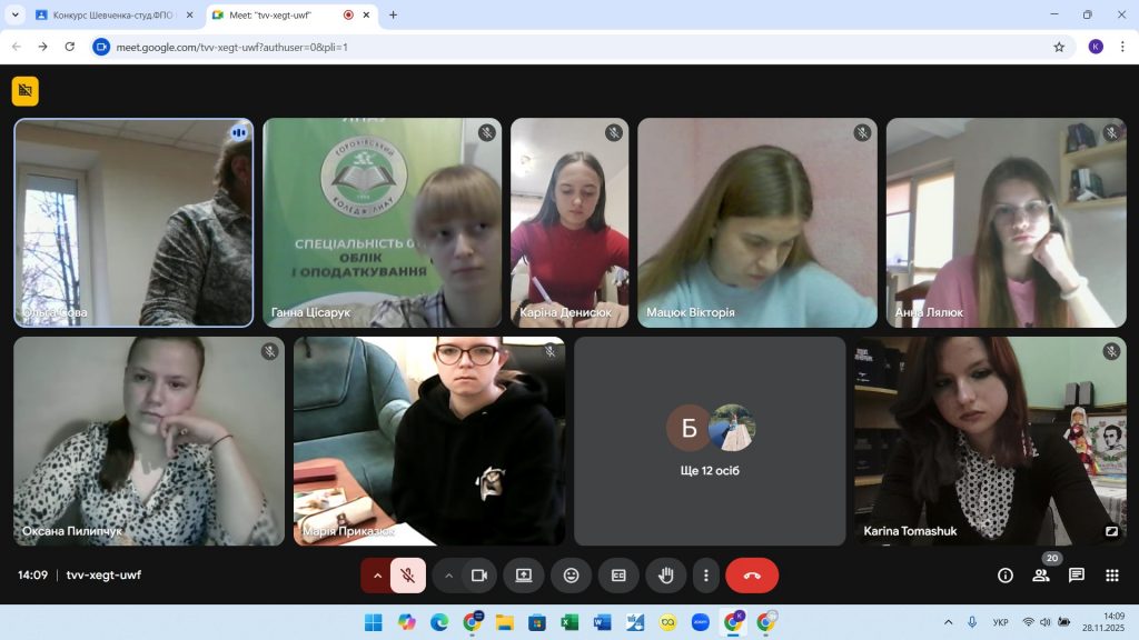 Традиційно здобувачі освіти Луцького кооперативного фахового коледжу Львівського торговельно-економічного університету є учасниками Міжнародного мовно-літературного конкурсу учнівської та студентської молоді імені Тараса Шевченка. Цьогоріч уже відбувся перший та другий (обласний) етапи ХVІ конкурсу. Учасницею обласного етапу стала другокурсниця Карина Томашук (переможець першого етапу), студентка ОПП Підприємництво, торгівля та біржова діяльність ( керівник Тамара Матвійчук). Конкурс спрямований на вшанування творчої спадщини Кобзаря, розвиток мовної та літературної культури, формування патріотичних цінностей серед молоді.