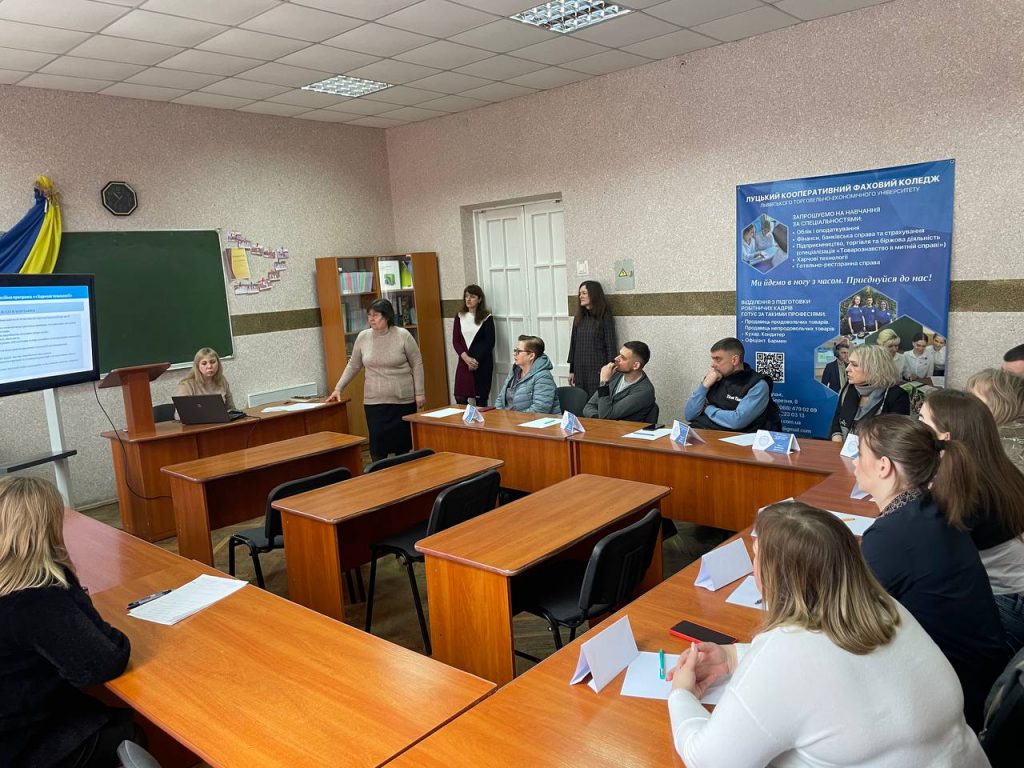 04 березня 2024 року , в процесі розвитку ЦЕНТРУ КАР’ЄРИ Луцького кооперативного фахового коледжу ЛТЕУ, відбулося засідання круглого столу зі стейкхолдерами на тему: «Питання вдосконалення підготовки фахівців зі спеціальності 181 Харчові технології». Мета заходу – актуалізація освітньої програми до вимог сьогодення, підвищення конкурентоспроможності випускників на ринку праці. Участь у засіданні взяли начальник виробництва ТОВ «Континіум-Трейд» Денис Богачук, арт-директор, шеф-кухар торгової марки «Карабас Барабас» Василь Сичук, HR менеджер мережі ресторанів Basilic Group Валентина Терех, шеф-кухар ресторану «Градний» Юрій Франчук, HP менеджер Emotion Group Катерина Самусік. Валентина Терех (HR менеджер мережі ресторанів Basilic Group) звернула увагу на важливості розширення компетентностей здобувачів освіти в сфері комунікації та адаптації в колективі, Василь Сичук підкреслив важливість набуття студентами навичок використання сучасного інноваційного устаткування. За результатами зустрічі було узгоджено низку пропозицій від стейкхолдерів щодо удосконалення проєкту освітньо-професійної програми , які будуть враховані при ухваленні остаточного рішення групою забезпечення ОПП Харчові технології.