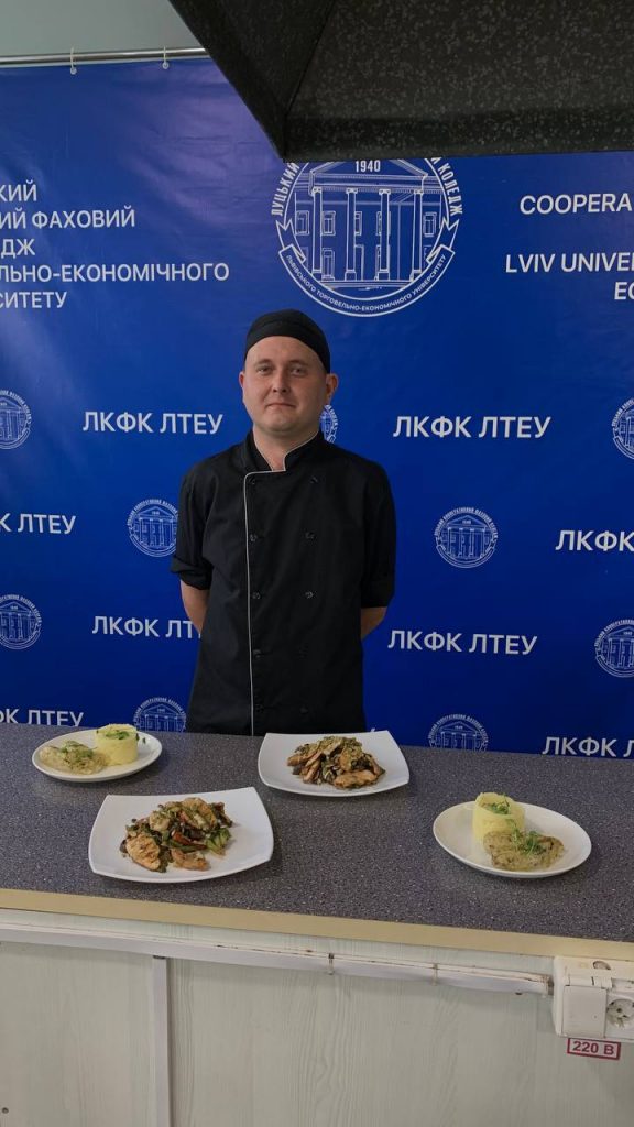 Підвищувати професійні навички ніколи не пізно. У Луцькому кооперативному фаховому коледжі ЛТЕУ відбувся кваліфікаційний екзамен для присвоєння lІІ розряду з професії 5122 Кухар Воляником Віктором Володимировичем, за програмою перепідготовки. Слухач продемонстрував вміння організувати робоче місце, знання технології приготування салату гриль і курячиз рулетиків з насінням.