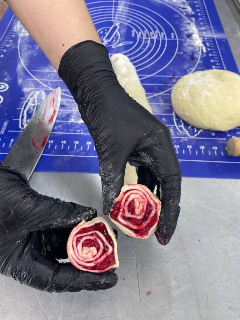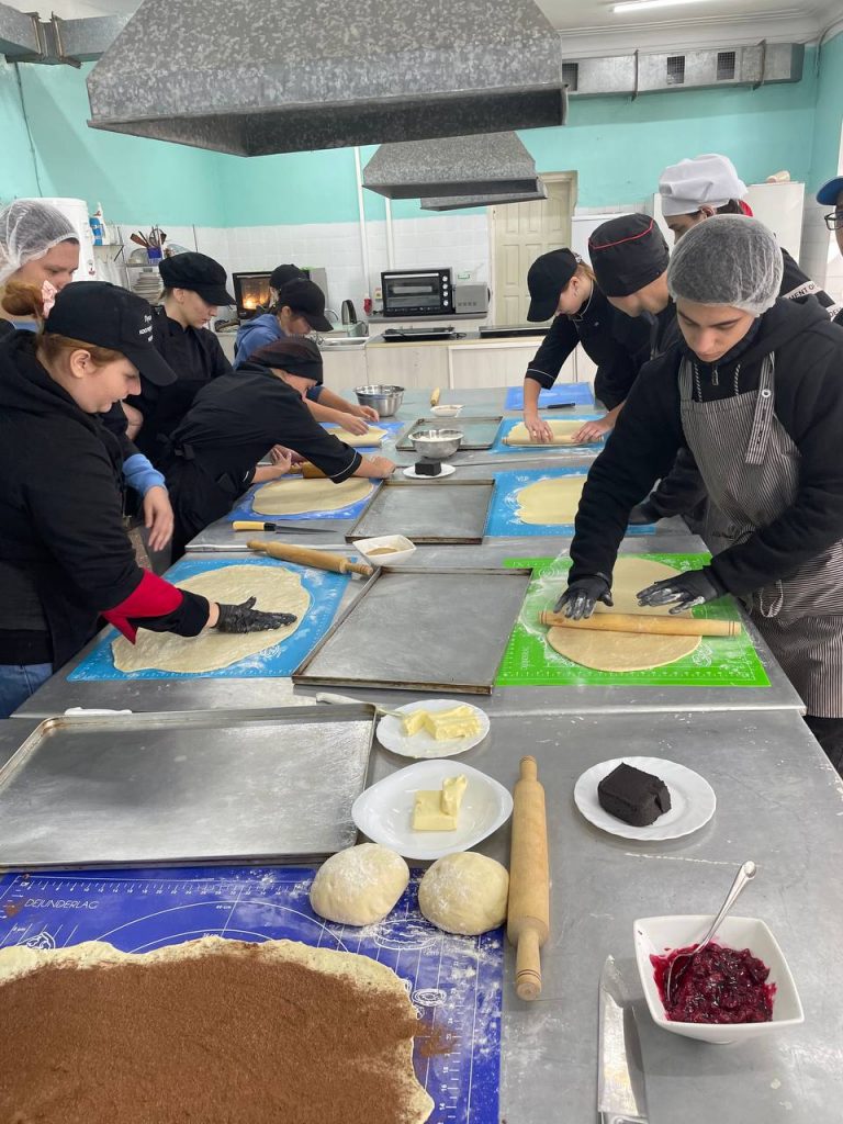 З нагоди Міжнародного Дня кухаря і кулінара 17 жовтня 2023 року студенткою 4 курсу спеціальності 181 Харчові технології Анастасією Тоболіною був проведений навчальний майстер-клас по приготуванню булочок «Сінабонів» для учнів професії Кухар. Кондитер. Анастасія поділилась своїми вміннями та навичками, які набула під час проходження виробничої практики. Учні отримали багато позитивних емоцій, вражень та оволоділи новими знаннями і досвідом.