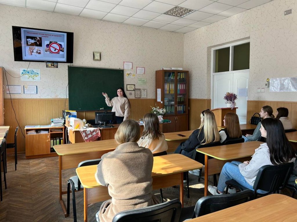 Здобувачі освіти першого курсу Луцького кооперативного фахового коледжу ЛТЕУ спеціальності 241 Готельно – ресторанна справа, провели годину спілкування “Негативний вплив алкоголю та тютюну на організм людини” (керівник групи Анна Лисюк ). Обговорили вплив алкоголю та тютюну на людський організм і психіку. Проблема вживання алкоголю та тютюну є актуальною у теперішніі час, тільки своєчасна відмова від алкоголю та тютюну допоможе підліткам уникнути проблем зі здоров‘ям та неприємними наслідками.