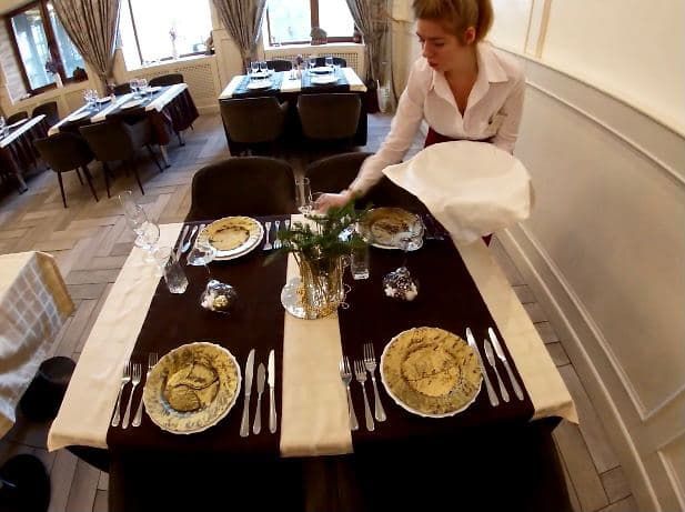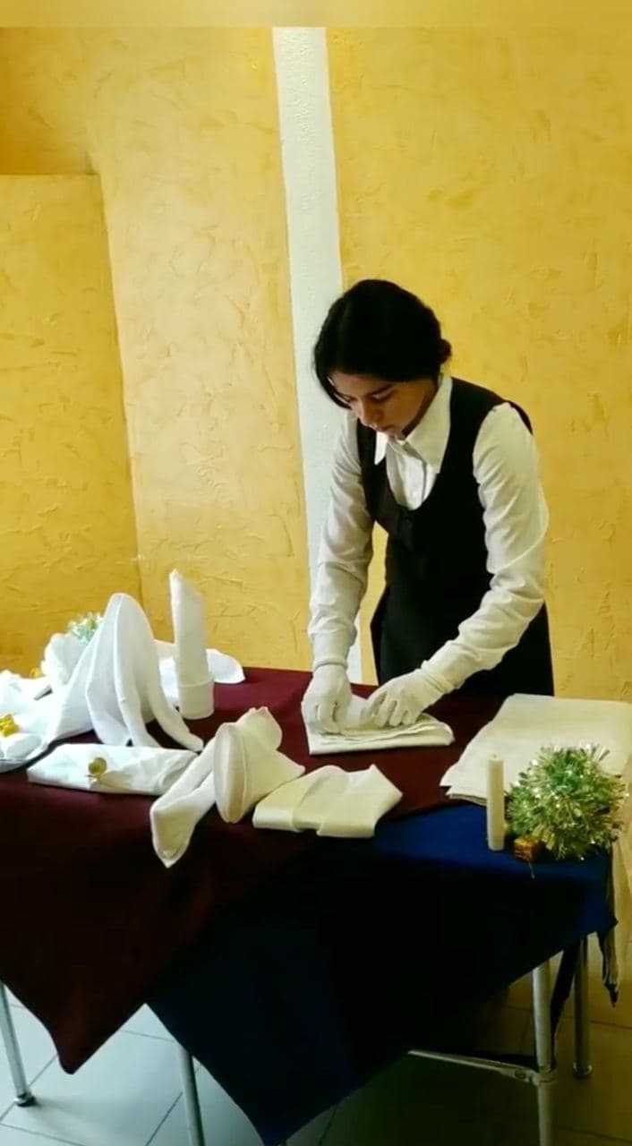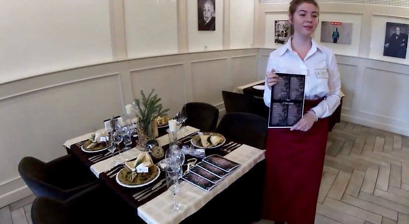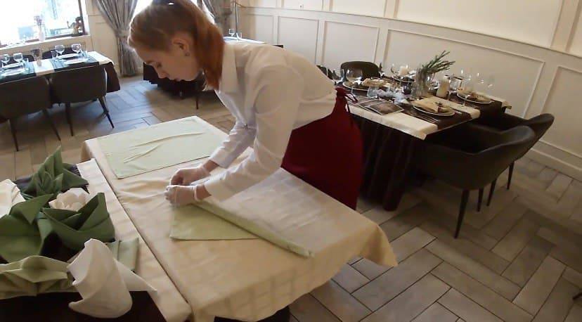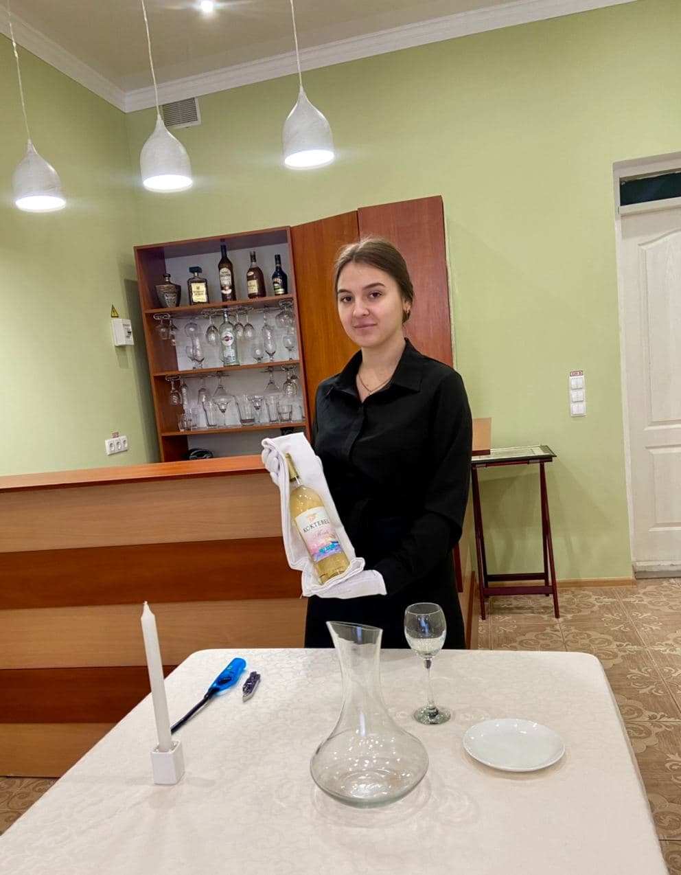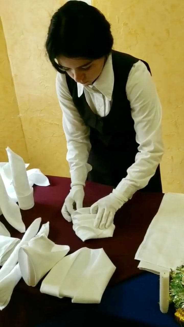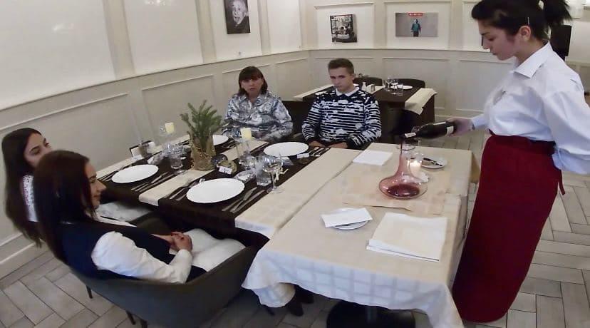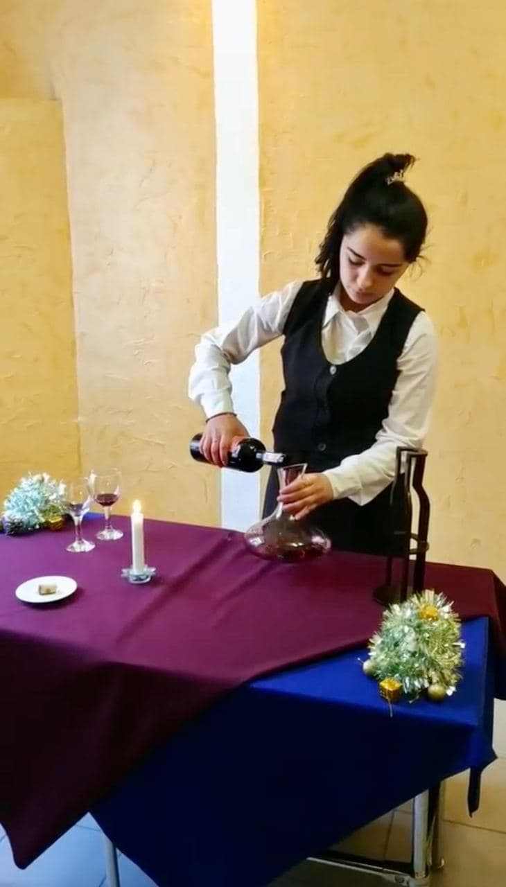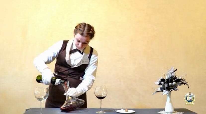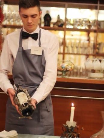 декантуванні вина, обслуговуванні гостей англійським та французьким способом, фламбуванні десерту.