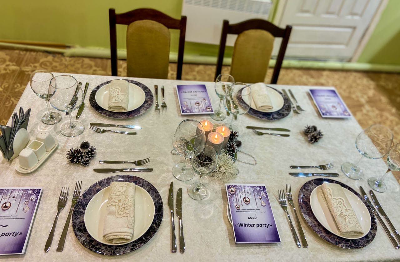 меню та серветок, сервуванні тематичного святкового столу «Зимовий вернісаж»,