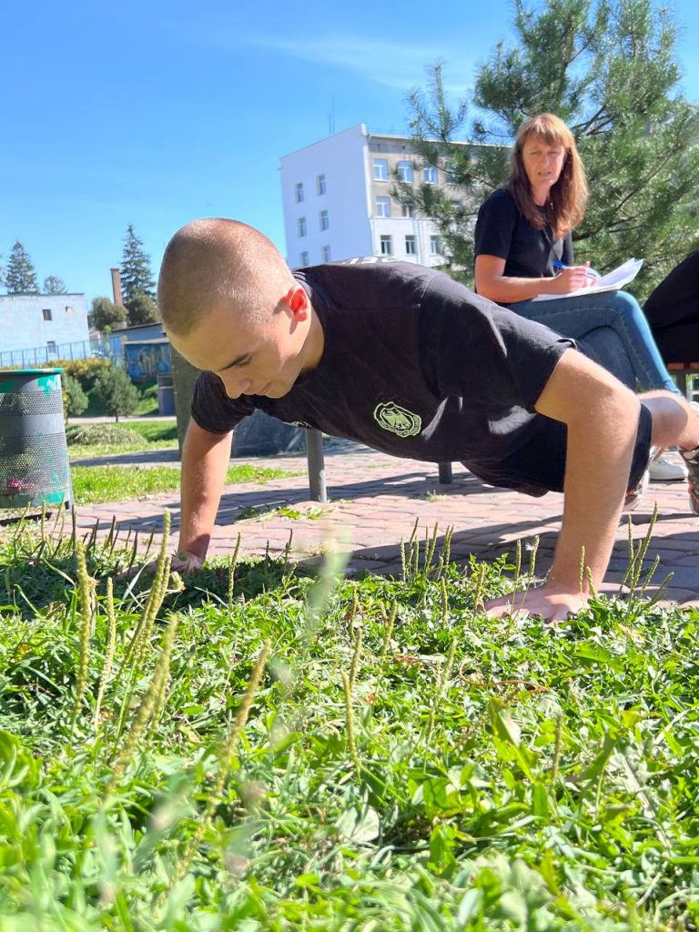 Керівник фізичного виховання Рогаля Володимир Адамович підготував цікаві завдання: підтягування на перекладині, згинання і розгинання рук в упорі лежачи від підлоги, човниковий біг (4 х 9 м), волейбол, стрибання на скакалках.