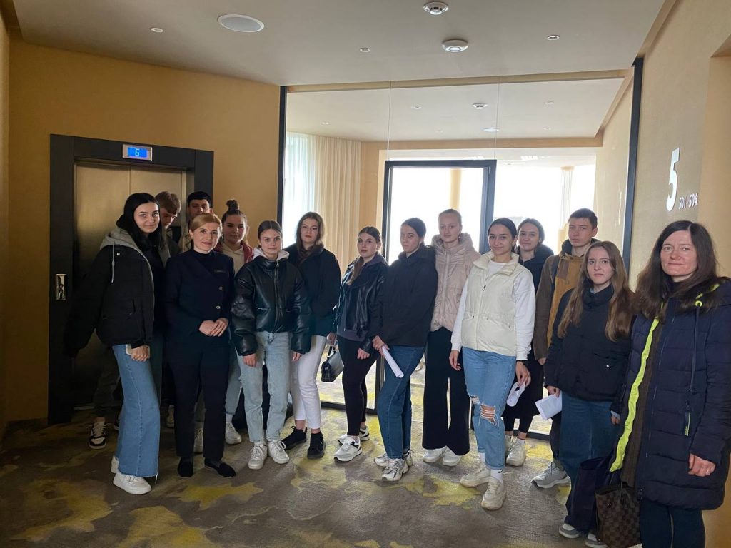 Здобувачі освіти ОПП Готельно-ресторанна справа та учні професії 5123 Офіціант, 5123 Бармен, члени гуртка Бароф в рамках діяльності ЦЕНТРУ КАР’ЄРИ, відвідали готельно-ресторанний комплекс Noble з метою вивчення впливу рівня підготовки обслуговуючого персоналу до підвищення рівня сервісу в закладах гостинності. Менеджер Noble Ірина Володимирівна Маркевич детально розповіла про роль адміністратора, офіціанта, бармена в роботі закладу готельно-ресторанного господарства, про способи вирішення конфліктів, методи підвищення кваліфікації працівників. Зустріч була пізнавальною для членів гуртка Бароф.