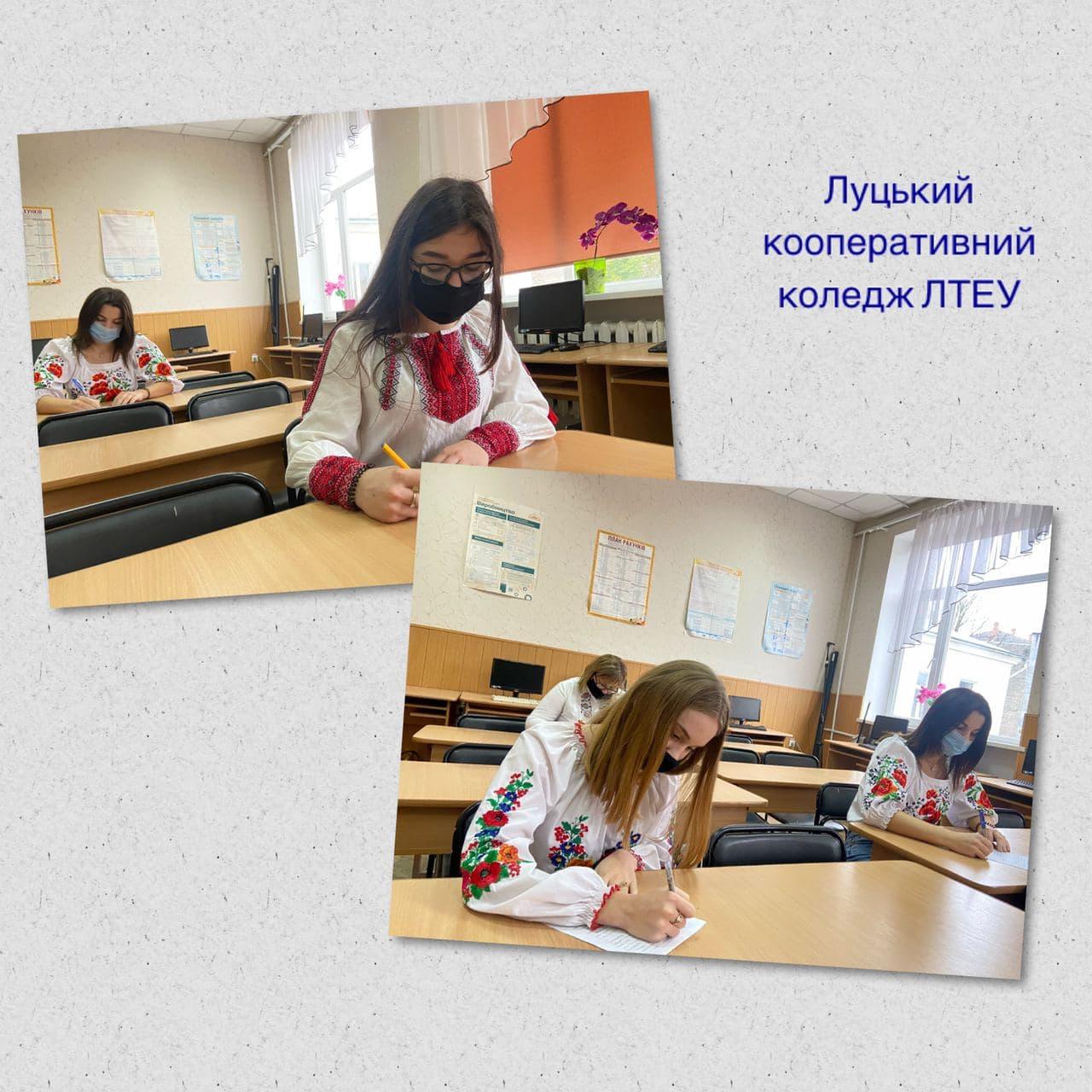 Студенти і викладачі Луцького кооперативного коледжу ЛТЕУ, 9 листопада, у День української писемності та мови, долучилися до написання ювілейного ХХ Всеукраїнського радіодиктанту національної єдності. Участь у цьому багаторічному флешмобі – не просто перевірка на грамотність. Це можливість відчути себе частиною великої нації, поєднатися з усіма українцями світу навколо рідної мови. За багаторічну історію, вперше радіодиктант писався в напівпорожніх аудиторіях, однак більшість студентів та викладачів долучилися онлайн.