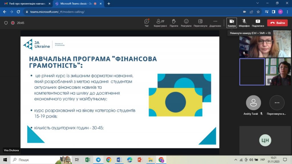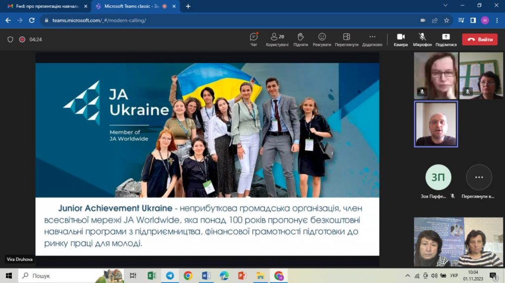 01 листопада 2023 р. викладачі Луцького кооперативного фахового коледжу ЛТЕУ Гнатюк Світлана та Цехош Наталія брали участь в онлайн – презентації навчальної програми «Компанія», відомої у світі як Junior Achievement Company Programme – найпоширенішої навчальної програми з підприємництва для молоді у Європі.