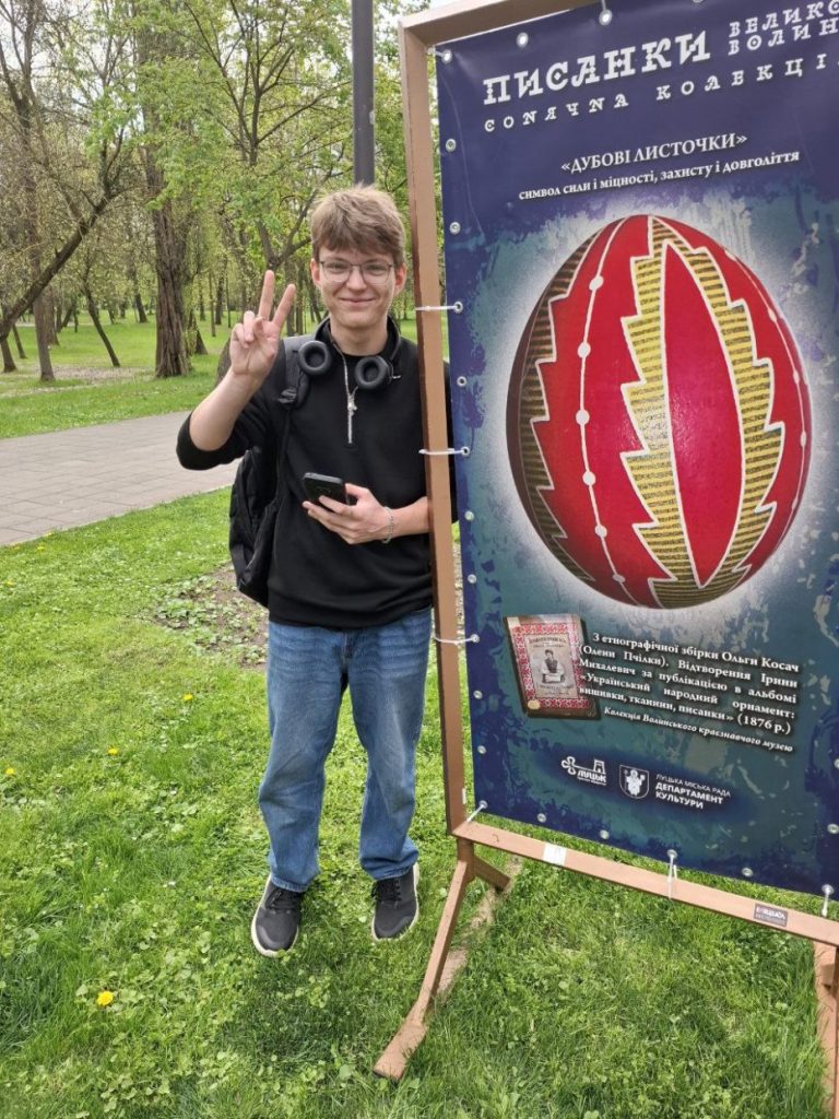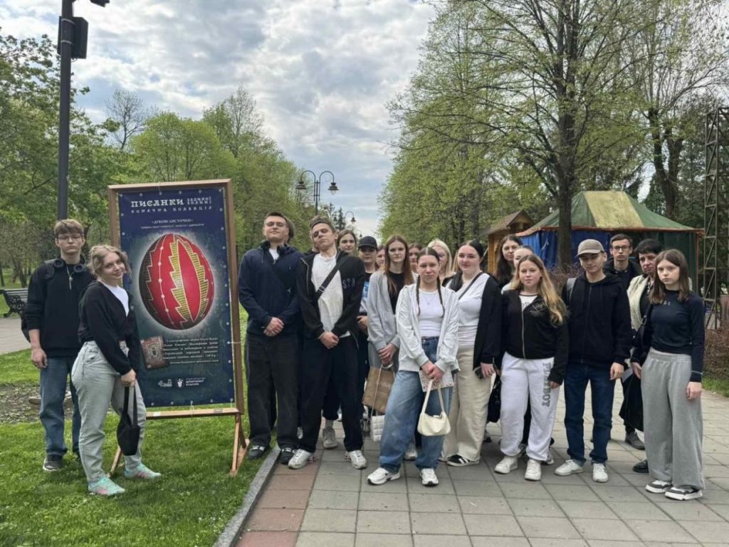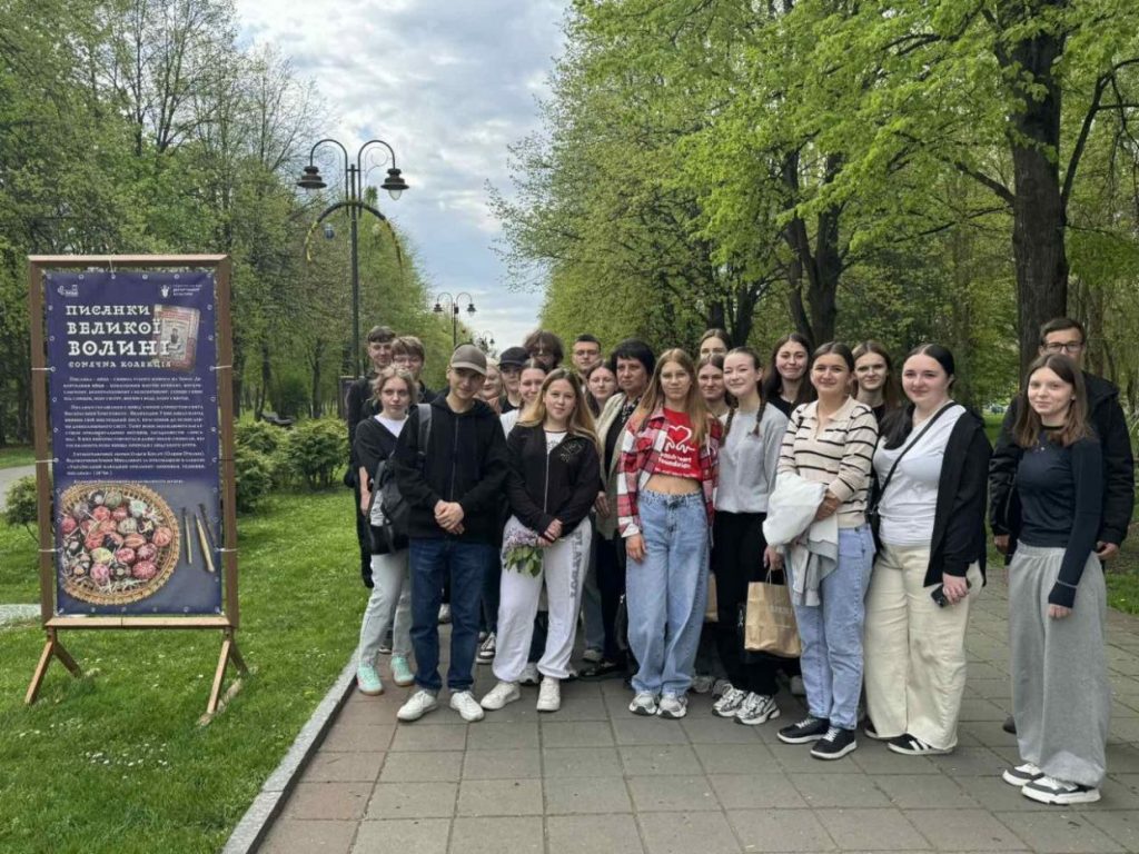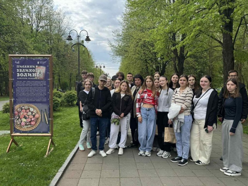 25 квітня викладач Гнатюк С.А провела виїзне заняття з Історії та культури України на тему: «Суспільно-політичне та національно-культурне життя XVIII-XX ст..». Здобувачі освіти 1 курсу ОПП Харчові технології, Облік і оподаткування мали можливість ознайомитись з одним із напрямів культури українців – писанкарством. Писанка і крашанка невід’ємний атрибут свята Великодня, адже вони створювалися як оберіг, який мав захищати дім та родину. Заняття було проведено в парку ім. Лесі Українки, де розміщена експозиція Волинського краєзнавчого музею «Волинські писанки» створені І. Михалевич на основі збірки О. Косач за публікацією в альбомі «Українські народні орнамент: вишиванки, тканини, писанки» 1876 р.