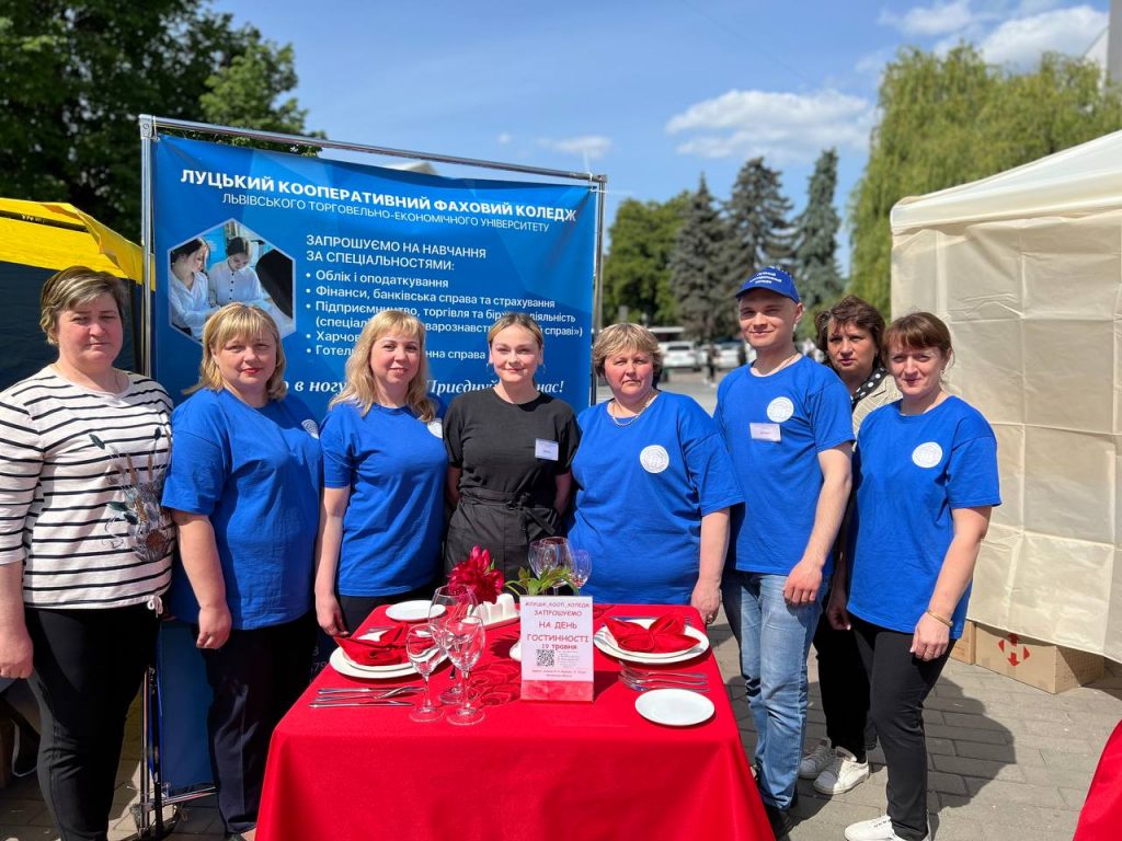 10 травня на Театральному майдані відбувся фестиваль робітничих професій «ВолиньFEST − 2024». Участь взяли понад 18 навчальних закладів. Луцький кооперативний фаховий коледж ЛТЕУ презентував професії “кухар. Кондитер”, “Офіціант. Бармен”, “Продавець”. Учні коледжу провели майстер-класи з приготування тістечка “Картопля”, приготування коктейлів, завязування галстуків, оформлення подарунків.