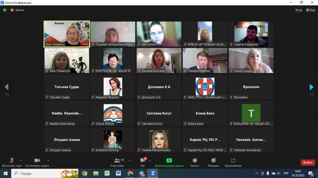 Викладач предмету Основи енергозбереження та енергоефективності Євтушик Т.В. та завідувач відділення Ляшук О.С. 25 жовтня 2023 року взяли участь у Всеукраїнському онлайн-марафоні «Кращі практики формування енергоефективних та екологічних компетентностей у здобувачів освіти ЗП(ПТ)О», який організовано НМЦ ПТО у Волинській області.