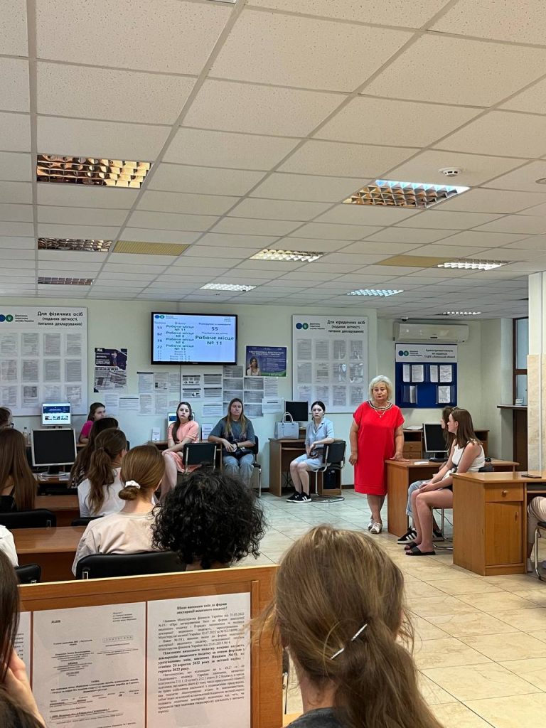 “Оскільки ви обрали професію, що безпосередньо пов’язана зі сферою обліку та оподаткування, наша розмова сьогодні у стінах Центру обслуговування платників – перший практичний крок до майбутньої професії» – наголосила начальниця управління організації роботи Головного управління ДПС у Волинській області Олена Нікотіна.