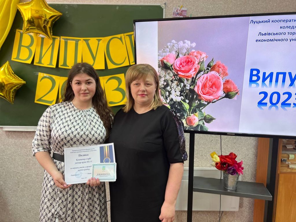 3 травня 2023 у Луцькому кооперативному фаховому коледжі ЛТЕУ відбувся випуск учнів професії “Кухар.Кондитер”. Ці роки навчання промайнули мов єдина мить. І сьогодні вони ступили на стежину самостійності.З початку повномасштабної війни в Україні ці учні активно підтримували наших хлопців ЗСУ, робили вареники з різними начинками, “бандерівські снікерси”, енергетичні батончики, пекли піцу, кондитерські вироби в асортименті та багато іншого. Вони добре знають, що в єдності наша сила.Бажаємо випускникам віри у завтрашній день, впевненості у власні сили, цілеспрямованості, рухатися вперед і не зупинятися на досягнутому, втілювати свої задуми і мрії в реальність. Сміливо крокуйте стежиною дорослого життя та виправдайте надії наставників-викладачів, гордо несіть звання випускника Луцького кооперативного фахового коледжу ЛТЕУ.