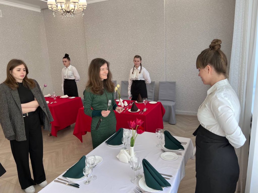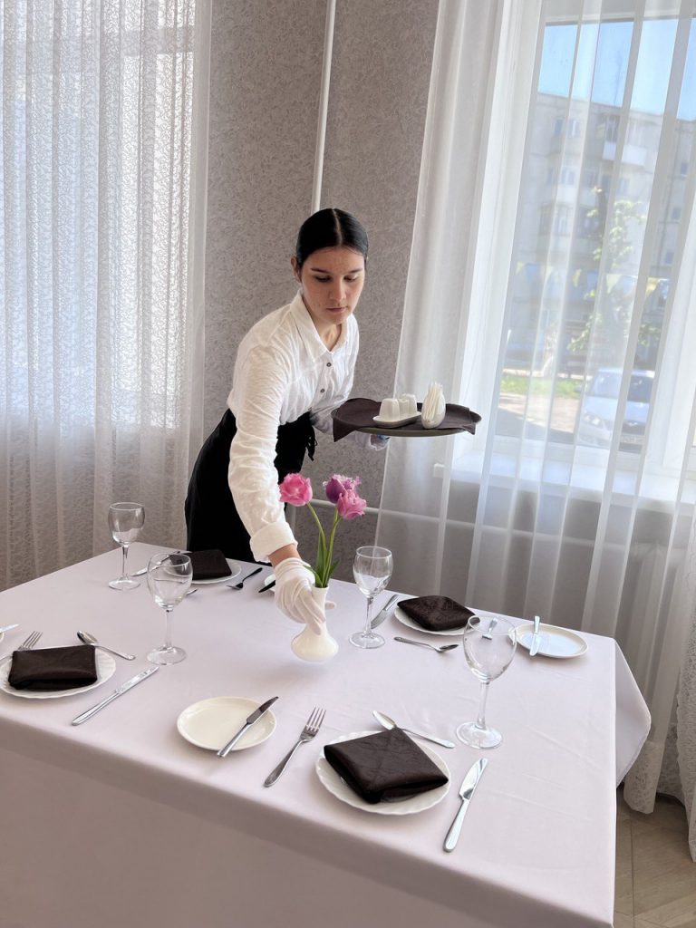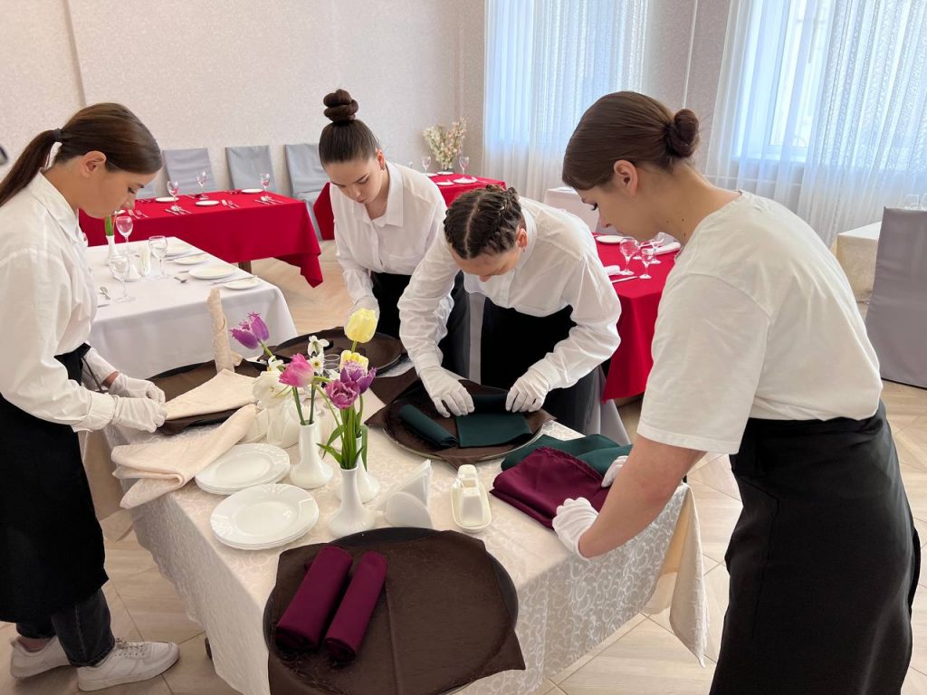 У Луцькому кооперативному фаховому коледжі ЛТЕУ був проведений залік із навчальної практики зі спеціальності в навчальній лабораторії “Бенкетний зал” серед студентів 2 курсу спеціальності 241 “Готельно-ресторанна справа”. Студенти продемонстрували вміння та навички складання серветок, сервірування столів, складання меню, розрахунку посуду, подавання страв та напоїв. Знання перевіряла менеджер готелю “Версаль” та адміністратор закладу “Собака” Дядюсь Вероніка Вікторівна.