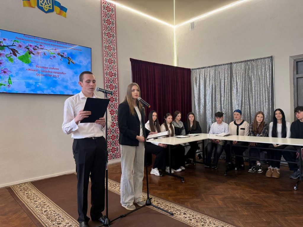 Учасники мовно-літературного гуртка “Світ українського слова” Луцького кооперативного фахового коледжу ЛТЕУ провели захід “Жінка – загадка природи”. Сьогодні, коли йде війна, українська жінка поруч із чоловіками стоїть на варті нашої держави. Хвилиною мовчання вшанували наших воїнів, серед яких немало й жінок, які віддали своє життя за те, щоб ми могли сьогодні вчитися й працювати. Побажали, щоб скоріше ПЕРЕМОЖНО закінчилась війна.